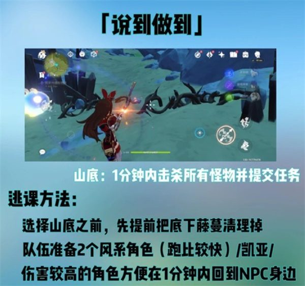 1、在选择【山底】前,先用安柏或任意火系角色清理地面的藤蔓