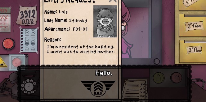 作为建筑物的看门人,玩家的角色由普通的门卫变成了保护租户的英雄,玩家必须阻止这些冒名顶替者进入的企图。玩家可以通过审查用户资料,检查身份证、确认公寓号码,甚至拨打验证电话来判断进入建筑的是人还是危险的生物