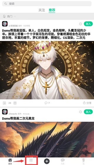 1、加入DomoAI绘画的兴趣社区,探索不同话题,和志同道合的人一起交流。