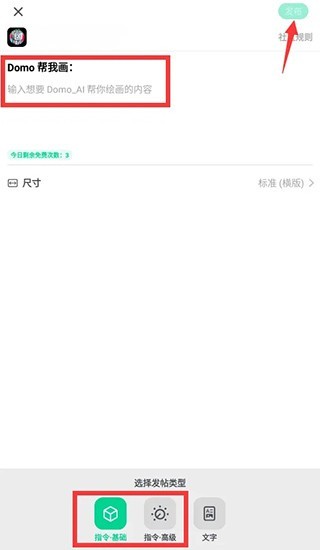 4、帖子标题处填写Domo帮我画,输入想要AI绘画的内容并发布,等待绘制结束即可。